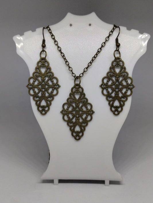 ANTIQUE BRONZE NECKLACE AND EARRING SET