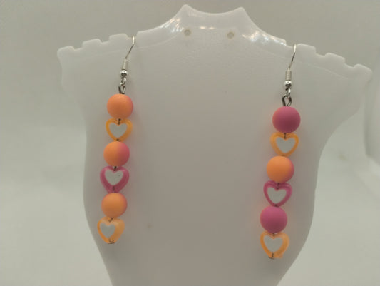 PINK AND ORANGE HEART EARRINGS