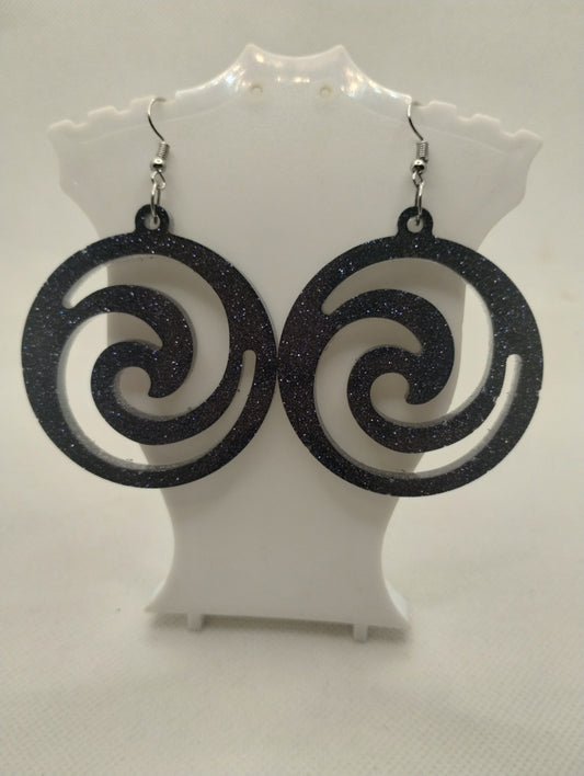 SHINY BLACK SWIRLY EARRINGS