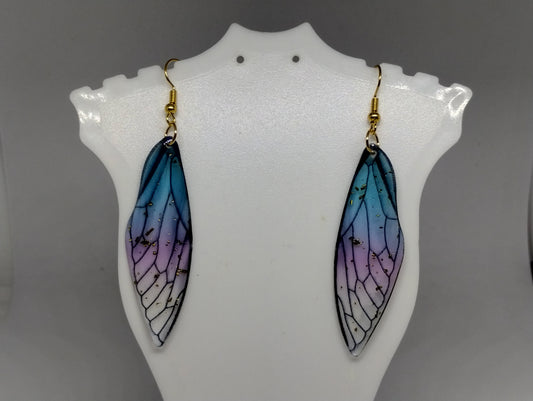 PURPLE AND BLUE INSECT WING EARRINGS