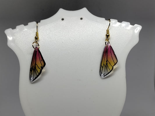 RED AND YELLOW INSECT WING EARRINGS