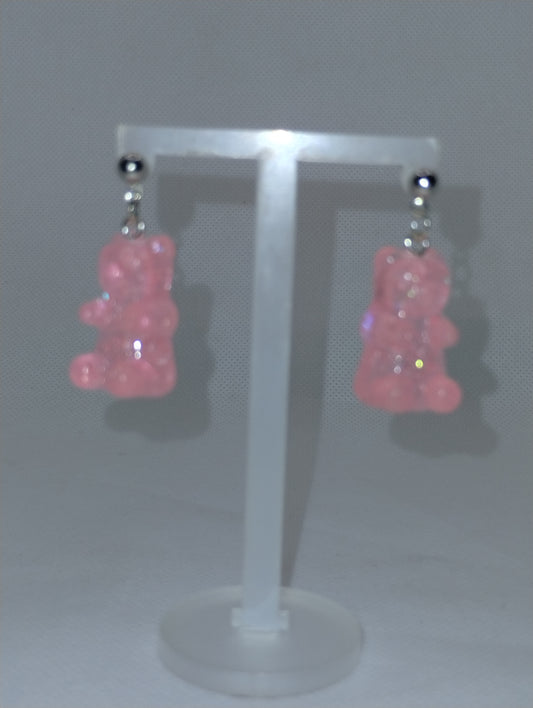 PINK GLITTERY GUMMY BEAR EARRINGS