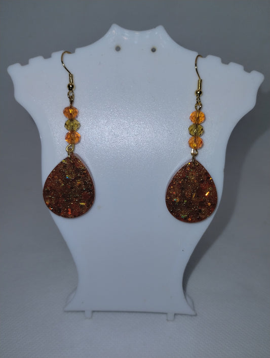 ORANGE AND GOLD TEAR DROP EARRINGS